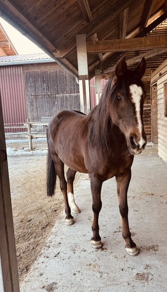 Wir suchen einen guten Platz für unseren Araber Wallach Amir. Er hat ein Stockmaß von 155, ist ein Dunkelfuchs und hat die typische Ausstrahlung eines Arabers. Amir ist ein reines Freizeitpferd. Auf Grund ein zurückliegenden, wahrscheinlichen Fesselträgerdiagnose ist er nur bedingt reitbar. Er liebt kleine Ausritte oder geht als Führpferd mit. Auf Grund seines sensiblen Charakters ist Amir kein Anfänger- oder Kinderpferd. Er wünscht sich einen ruhigen, pferdeerfahrenen Menschen mit Gefühl und Geduld, der Freude an feiner Kommunikation und gemeinsamer Zeit hat. Für Amir wird ausdrücklich ein liebevolles, passendes Zuhause gesucht. Er soll gefördert und wertgeschätzt werden