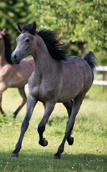 Hongre pur-sang arabe égyptien – 1,5 ans Nous proposons à la vente un jeune hongre pur-sang arabe égyptien prometteur, âgé de 1,5 ans. Il a un caractère joueur, vif et se montre comme un petit sauvage plein de vie, mais toujours curieux et désireux d’apprendre. Ses mouvements amples et élégants laissent déjà présager un grand potentiel pour l’avenir. En tant que poulain, il a été distingué par deux étoiles et a reçu une prime. Son père est primé or, et sa mère est une poulinière reconnue avec une prime de l’association. Nous recherchons des mains expérimentées, compétentes en chevaux, capables de lui offrir un encadrement adapté et un foyer plein d’amour.
