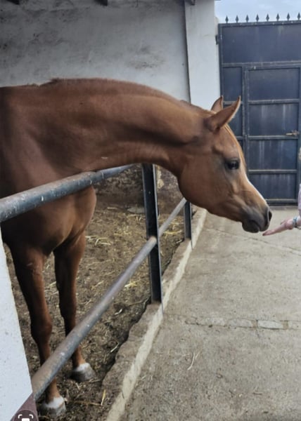 Excellent 4-year-old mare with very good movement and strong breed type. Started under saddle with groundwork and ridden work. Stands at 16.0 hh. A great prospect for sport.