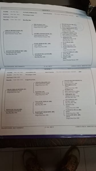 Proponiamo in vendita splendido stallone Purosangue Arabo di 3 anni, mantello baio, con pedigree di altissimo livello internazionale, ideale per allevamento, show e valorizzazione futura. 📜 PEDIGREE DI GRANDE PRESTIGIO 🔹 Padre: SA FAEZ SIMBAD (IT) – baio (2012) Discendente diretto di WH Justice, uno degli stalloni più influenti nel panorama mondiale dello show arabo. Nel ramo paterno troviamo inoltre linee importanti come: Magnum Psyche (US) Padron’s Ghibli (US) St Synbad (BR) Linee riconosciute per tipicità, testa raffinata, espressione e forte presenza scenica. 🔹 Madre: SA KARIMA (IT) – grigia (2009) Con sangue Ali Jamaal e Ansata nel ramo materno. Compaiono inoltre linee come: Ansata Shaamis (US) Nahar El Hilal (BR) Genetica che unisce eleganza, struttura e movimento. ✨ CARATTERISTICHE Stallone Purosangue Arabo iscritto ITSB 3 anni Mantello baio Genealogia internazionale di alto valore Ideale per allevatori che cercano sangue WH Justice e Ali Jamaal Ottima opportunità per chi desidera investire in uno stallone giovane con linee di grande prestigio, molto apprezzate nel mercato arabo.
