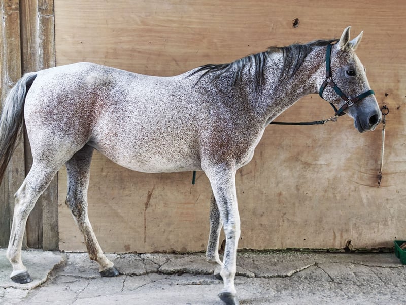 Zum Verkauf steht eine typvolle Shagya-Araber Stute, 13 Jahre alt, Stm 156cm, mit vollständigen Papieren. Noyana wurde bereits als Fohlen prämiert. Auf Wunsch können gerne die Papiere eingesehen und der Kontakt zum Züchter hergestellt werden. Sie wurde spät angeritten, ist gesund und läuft barhuf. Noyana ist sowohl in der Halle als auch im Gelände geritten und geht zuverlässig allein sowie in der Gruppe ins Gelände. In der Herde zeigt sie sich verträglich. Charakterlich ist sie sehr menschenbezogen und bindet sich eng an ihre Bezugsperson. Sie benötigt einen geduldigen, einfühlsamen Reiter, dem sie dann mit großer Motivation und Leistungsbereitschaft begegnet. Nicht geeignet als Kinderpony oder Schulpferd. Der Verkauf erfolgt ausschließlich wegen Aufgabe des Reitsports aus persönlichen Gründen und natürlich nur in beste Haltung mit regelmäßigen Koppelgang. Bei ernsthaftem Interesse freue ich mich über Ihre Nachricht.