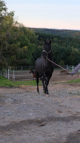 Nous proposons à la vente notre jeune étalon élégant. Né le 05/05/2023, il impressionne déjà par sa belle conformation, sa tête claire et son tempérament amical. C’est un jeune étalon moderne, bien construit, qui possède beaucoup de qualités pour l’avenir – que ce soit pour la reproduction, les concours ou plus tard en selle. Il grandit de manière robuste, est en bonne santé, parfaitement socialisé et se montre coopératif dans son quotidien. En raison d’une réduction de notre cheptel, nous recherchons pour lui un foyer où il pourra continuer à être encouragé et apprécié. Intéressé ? Contactez-nous par WhatsApp au +43 664 530 23 66.
