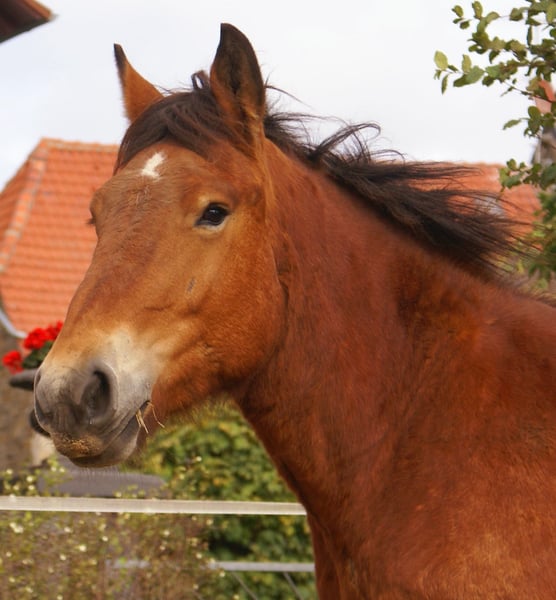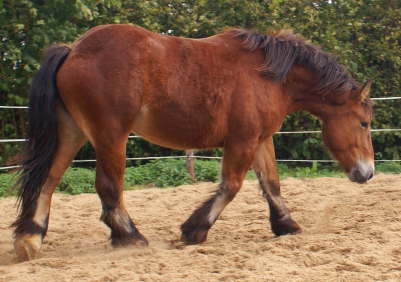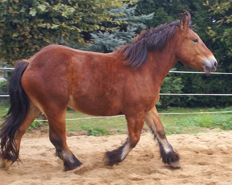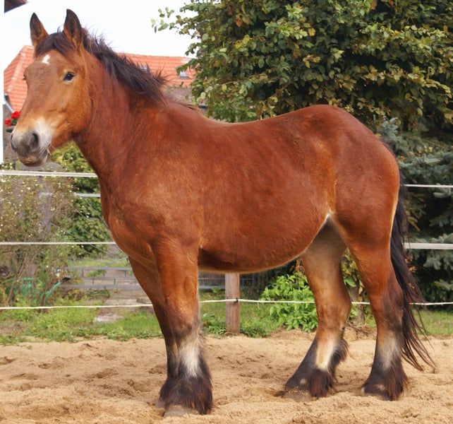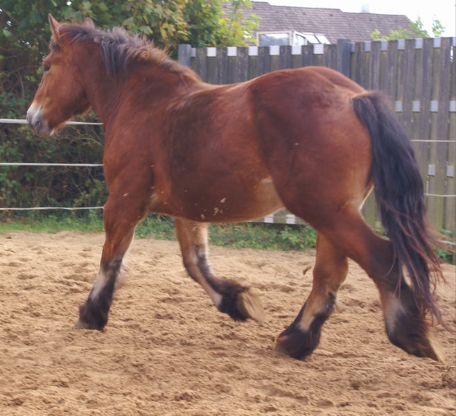 Ardennes mare with a heart in the right place, friendly, easy-going, affectionate, ready to start her training soon, full papers, loads well into the trailer and stands calmly alone.