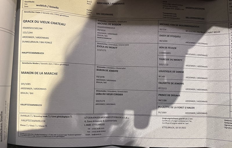 Luxemburger Arenner Stute - volle Abstammung - 3 Jahre alt