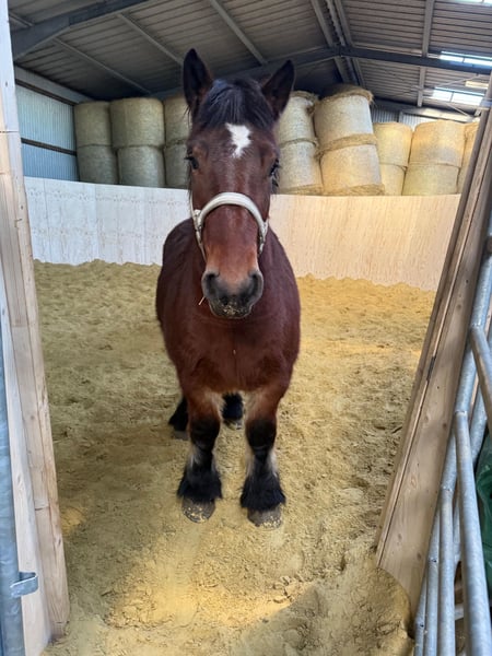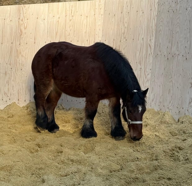 Zum Verkauf stehe eine 3 Jahre alte Ardenner Stute, etwa 152cm groß mit voller Abstammung. Sie hat ein tolles ruhiges Wesen und ist sehr zutraulich und lieb. Sie ist gut halfterführig, kennt angebunden stehen, geputzt werden und ist auch schon anlongiert. Auch bei der Arbeit zeigt sie sich sehr gelehrig und brav. Sie wäre aufgrund der Abstammung auch gut als Zuchtstute geeignet. Sie kann robust gehalten werden, ist absolut verträglich in der Gruppe, kennt aber auch die Box. Preis steigt sobald sie angeritten ist! Krankheiten oder Allergien sind nicht bekannt. Eine AKU darf gerne gemacht werden. Für das Ausprobieren des Pferdes berechnen wir 35€. Beim Kauf wird dies gutgeschrieben. Gerne anrufen oder eine Nachricht senden 0157 36803742 Alle Angaben ohne Gewähr, Preisänderungen vorbehalten, Transport möglich, Onlinekauf möglich