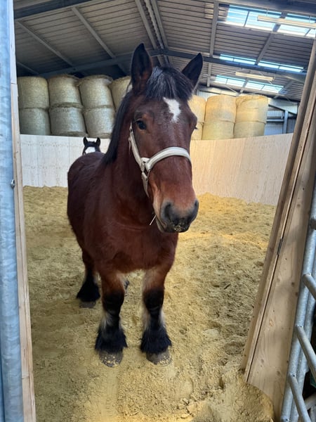 Vente d'une jument Ardennaise de 3 ans, d'environ 152 cm au garrot, avec toute sa lignée. Elle possède un tempérament calme, doux et très confiant. Facile à manipuler, elle connaît la mise en licol, l’attache, le pansage et a déjà été longée. Elle se montre très obéissante et studieuse lors du travail. Grâce à ses origines, elle pourrait également convenir comme jument de reproduction. Elle peut être maintenue en pâture, est totalement compatible avec un groupe et connaît également la stabulation. Le prix augmentera dès qu’elle sera montée en selle ! Aucune maladie ou allergie n’est connue. Un contrôle vétérinaire complet peut être effectué. Pour essayer le cheval, nous facturons 35 €. Ce montant sera déduit en cas d’achat. N’hésitez pas à appeler ou à envoyer un message au 0157 36803742. Toutes les informations sont données sans garantie, sous réserve de modifications de prix. Transport possible, achat en ligne également disponible.