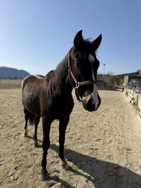 Loki ist ein 2-jähriger ÖWB Wallach, lebt in einer gemischten Herde im Offenstall und ist ein sehr anhänglich, lernwilliger, etwas frecher, lustiger Kerl, der es absolut liebt mit dem Menschen etwas zu machen. Er war im Sommer 2025 auf einer Alm mit gleichaltrigen Wallachen/Hengsten. Er ist Halfterführig, kennt Hänger, Tierarzt und Hufschmied. Kennt Hunde, Traktoren, Motorsägen, quasi das ganze Hofleben. Ist relativ unerschrocken und sehr neugierig. Er ist dem Alter entsprechen noch ein kleines Stritzi, aber nie böse. Wir beginnen langsam mit dem Longieren. Schrecktraining kennt er und macht alles super mit. Er wird definitiv ein starker Charakter, der immer zum Menschen möchte und mit dem Menschen was erleben möchte. Er zeigt viel Freude am Arbeiten, vor allem am Herumspringen. Das ist kein Notverkauf, er wird ausschließlich an ein perfektes zu Hause vergeben. Er bekommt seine aktuelle, kleine, Ausrüstung mit. Er kennt Notbox und verhält sich brav, aber es wird ihm schnell langweilig, reine Boxen/Box-Paddock-Haltung wäre nichts für ihn. Videos können gerne geschickt werden.