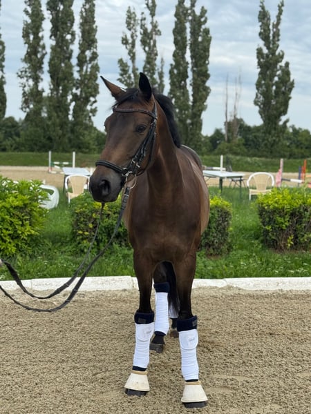 5yo Gelding winning all young horse competition in DPL-Level, scoring 9,0 marks in trot! He is super easy to ride, always willing to work and not to big (165cm) so he would be a good horse for juniors. Has sighting for international competitions, actually L-Level on competitions but knows much more (lateral movements, starting with flying changes, halfpasses…)