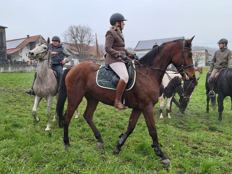 Schonend 3-jährig, im Gelände, angerittener Youngster. Schöne Gänge und brav im Gelände. 2025 ist er 3 Jagden mitgegangen, einen 10 tägigen Ostsee Wanderritt durch das Meer und die Heide und auch seine ersten festen Hindernisse gesprungen. Definitiv Amateur geeignet. Angenehmes „Go“ ohne dabei heiß zu werden. Tolles Ausbildungspferd / Tunierpferd für die nächste Saison. Nur Aufgrund von Zeitmangel abzugeben.