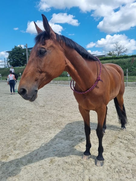 Surprise" hat jahrelang fleißig bei mir in der Reitschule mitgearbeitet. (Immer 1 Ruhetag pro Woche mindestens!) Größe ca 165 cm Alter 20 Sie ist eine wunderschöne Österreichische WB Stute und ist bis auf leichtes Asthma (im Winter gar nicht zu merken, im Sommer nur selten)und Spat (seit Jahren eingespritzt und hat noch nie Probleme gemacht seither)total fit! Springen ist nur mehr kleine Gymnastik möglich, im Gelände oder in der Dressur ist sie voll dabei und motiviert! Sehr schrecksicher und bestimmt auch als Familienpferd gut geeignet, da sie siehe Video auf Kinder sehr aufpasst! Sie hat sich nun ihren Platz als Privatpferd mehr als verdient! Spitze wäre es, wenn sie ihr Platzerl bis Ende Jänner finden könnte... damit wir keine neuerliche Einstellgebühr für Februar zahlen müssen und ich wäre daher bereit preislich für ein gutes Zu Hause von 3🥕🥕🥕 auch deutlich nachzulassen. Probereiten ist im Magna Racino möglich. Transport gern möglich!