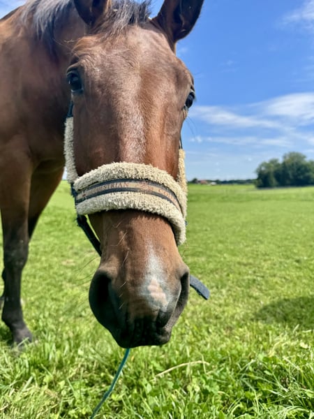 Entzückende Maus zu vergeben in gute Hände da ich umschwänken möchte auf PoloPferde. Sie ist in einer Aufzucht wo sie voll und ganz ihre Zeit genießen kann und mehr oder weniger unberührt ist . Sie kennt aber Schmid , gobt die Beine brav, lässt sich führen , anbinden , putzen und ist super entspannt vom Gemüt . Eine ganz süße Maus . Schlägt nicht , beißt nicht öegt die ohre nicht zurück und lässt alles soweit mit sich machen ohne Drama . Sie hat eine Überbiss der sie soweit nocht wirklich einschränkt . Nur regelmäßig Zähne abschleifen wäre wichtig , aus Heunetz fressen könnte schwieriger für sie sein und ganz ganz kurze Gras . Sonst ist sie ein ganz normales Pferd .