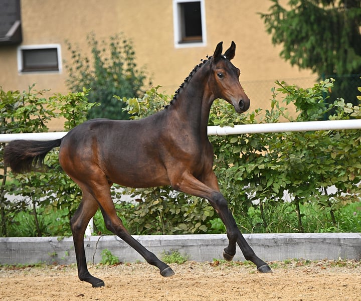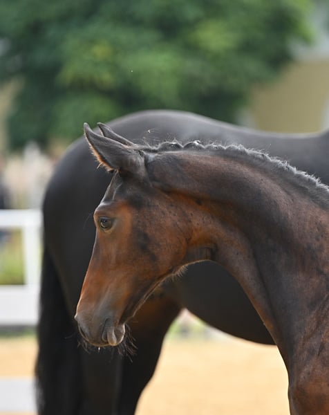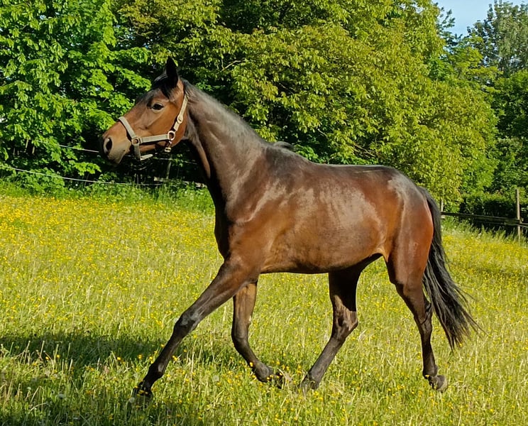 Kleiner familiärer Zuchtbetrieb mit 30jähriger Erfahrung in der Pferdezucht hat eine 3jährige dunkelbraune blutgeprägte Stute (ohne Abzeichen) für den Dressursport zu verkaufen: Damira von Fürsten-Look Pr.H. x Dancier x Sandro Hit x Lauries Crusador xx verfügt über 3 sehr gute GGA, ein trockenes Fundament, einen hübschen Kopf und eine gute Oberlinie. Ihr derzeitiges Stockmaß beträgt ca. 165 cm. Beim NÖ Fohlenchampionat konnte sie mit einer Gesamtnote von 9,2 den 5. Platz (9,5 für Typ und Bewegung) belegen und qualifizierte sich somit für das Bundeschampionat, wo sie mit einer Gesamtnote von 8,5 nur knapp den Endring verpasste. Ihr Vater Fürsten Look und seine zahlreichen Nachkommen sind vielfach siegreich in Dressurpferdeprüfungen (mehr Details siehe Website Hengststation Paul Schockemöhle). Ihre Mutter Daisy hat 2024 mit ihrem Halbbruder Escariano v. Escanto den Bundeschampion der dressurbetonten Hengstfohlen und mit dem Halbbruder Besito v. Bernay den Sieger der 4j. Materialpferde in NÖ gestellt. Die Stute ist sehr menschenbezogen und umgänglich, da sie in einer kleinen gemischten Herde aufgewachsen ist, und ist derzeit noch roh. Trotzdem ist sie aufgeweckt und bewegungsfreudig. Selbstverständlich wird sie regelmäßig entwurmt und geimpft, und auch bei der Hufbearbeitung benimmt sie sich ganz vorbildlich. Sie kennt Boxenhaltung mit täglichem bzw. ganztägigem Koppelgang. Standort der Stute: westliches NÖ Nähe Amstetten (zwischen Linz und Wien). Weitere Auskünfte gerne telefonisch.