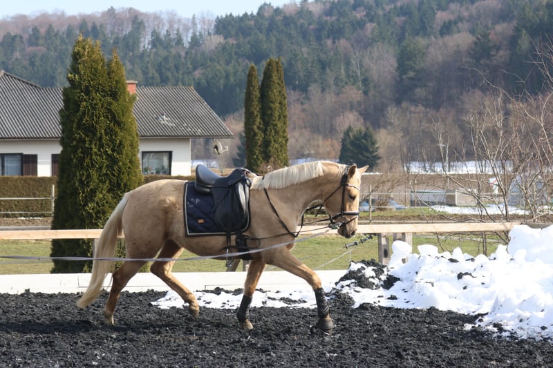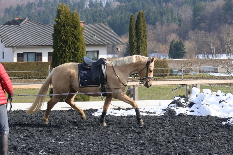 Die Stute wird aktuell schonend angeritten und zeigt sich dabei äußerst unkompliziert und lernwillig. Das Reitergewicht kennt sie bereits und meistert diese neuen Aufgaben mit einer bewundernswerten Gelassenheit.
