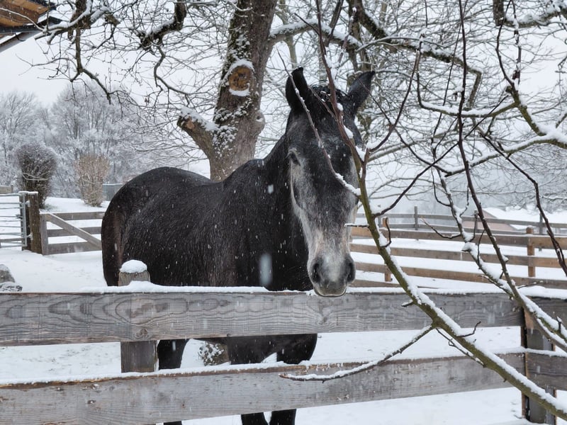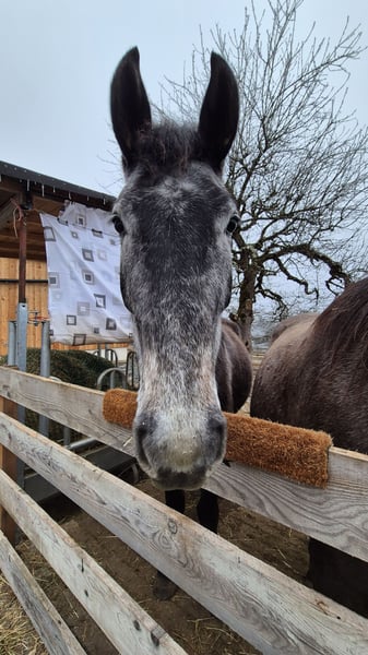 For sale is my lovely Austrian Warmblood mare, Freya (Diamant). She will likely shed a bit more coat as the season progresses. This little mare is nearly 4 years old and has spent her life in a herd on mountain pastures and meadows. She is currently approximately 16.1 hands tall and has a very sweet temperament. Due to an accident, I was unable to continue her training, so she is not yet backed but is familiar with the bridle. Freya is a truly well-behaved, friendly mare, low in the herd hierarchy, and very curious. She still needs a calm and confident handler to show her the world and give her time to settle. She is quick to learn and eager to cooperate. This is not a desperate sale and she will only be handed over to the best possible new owner! After a personal introduction between horse and handler, we can discuss further details. Please feel free to contact me via WhatsApp or message at 0650/5131579