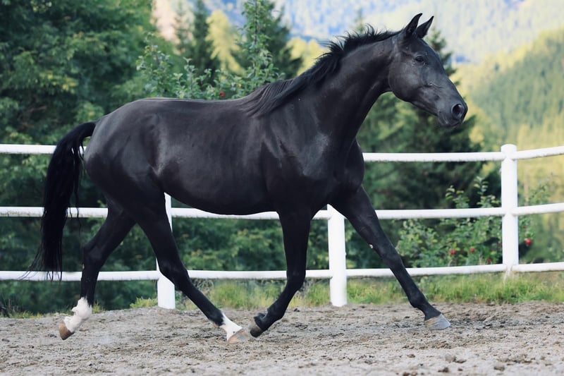 **Sales Advertisement:** **Beautiful Austrian Warmblood Mare for Sale!** We are looking for a loving new home for our talented black mare, born in 2022. With a height of 170 cm, she has an impressive presence that is well-suited for both dressage and breeding. This mare impresses not only with her elegant appearance but also with her balanced character and willingness to learn. She is currently in training under saddle and shows great potential in dressage, making her an incredibly well-behaved training horse. She is very social within the herd. She is suitable for all riders as well as juniors who wish to further develop her talent. If you are interested or would like more information, we look forward to your message! **Location: [Your Location]** 9546 Bad Kleinkirchheim **Contact: [Your Contact Information]** 0043 664 4023231 We look forward to introducing you to this wonderful mare!