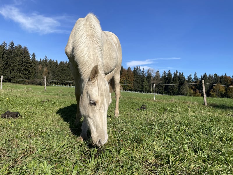 Ein vielversprechender Charakter mit Sonderfarbe. "N'Sync", auch "Naseweis" genannt, ist ein junger Palomino mit tollem Wesen. Er ist freundlich, mutig, gelassen, neugierig, nicht ängstlich und dem Menschen zugewandt. Das Fohlen-ABC und alles, was danach noch gut auf eine spätere Karriere als Reitferd vorbereitet, hat er mit Bravour absolviert. Führen, spazieren, anbinden, waschen, Hufe geben, Hufschmied usw. das ist für ihn alles bekannt und unproblematisch. N'Sync ist korrekt gebaut, fit und bewegt sich gut in allen Gangarten. Seine Endgröße schätze wir auf etwa 1,64, er wird kein Riese. Als Jährling war einen Sommer lang auf der Alm in einer Warmblutherde, dort hat er die besten Kräuter gefressen, seine Sehnen und Gelenke gestärkt und sich sozial in ein völlig neues Umfeld integriert. Als 2,5-Jähriger darf er sich jetzt in einer kleinen Jungs-Herde noch weiterentwickeln. Seine Eltern haben beide im Sport Leistungen gezeigt und sich im Umgang charakterlich besonders hervorgetan. Mit dieser Kombination haben wir ganz bewusst ein verlässliches, ansprechendes Pferd gezüchtet, das Leistung bringen kann, aber auch für absolute Amateuere viel Freude bringt. Seine Mutter Karmen ist ein Vielseitgkeitspferd, am Turnier erfahren und im Alltag absolut verlässlich. Sie ist ein Traumpferd - genügend Go und Temperament, aber einfach immer handelbar und eine echte Lebensversicherung. Diese Grundcoolness hat sie an ihren Sohn weitergegeben. Sein Vater Nikkei xx war ein Rennpferd, über mehrere Saisonen (Jahre) erfolgreich auf der Bahn. Seit drei Jahren ist er für die Warmblutzucht gekört und als Deckhengst aufgestellt. N'Sync hat einen besonderen, sehr alten Stammbaum. Sein Pedigree ist über Jahrhunderte rückverfolgbar. Die Mutterlinie geht aus den Monarchiepferden hervor. Adelige, robuste, treue Pferde, für deren Zucht der "will to please", Gesundheit und Härte ausschlaggebend waren. Das ungarische Staatsgestüt Somogysard aus ihrer Ahnenreihe hat sich mit seinen guten vielseitigen Pferden einen Namen gemacht. Sein Vater Nikkei stammt von Nicella ab, deren Vater Lando wiederum ein top Vererber in der Warmblutzucht ist. Qualität in Farbe: Mit diesen Elternteilen weicht N'Sync trotz der hohen Qualität von allen populären Linien der Farbzucht ab und wird damit zur Rarität. Wir wünschen uns für ihn ein gutes Zuhause bei jemanden, der mit diesem Jungpferd wachsen möchte. Für ihn stehen alle Sparten offen - ob im Sport oder als Partner für die Freizeit.