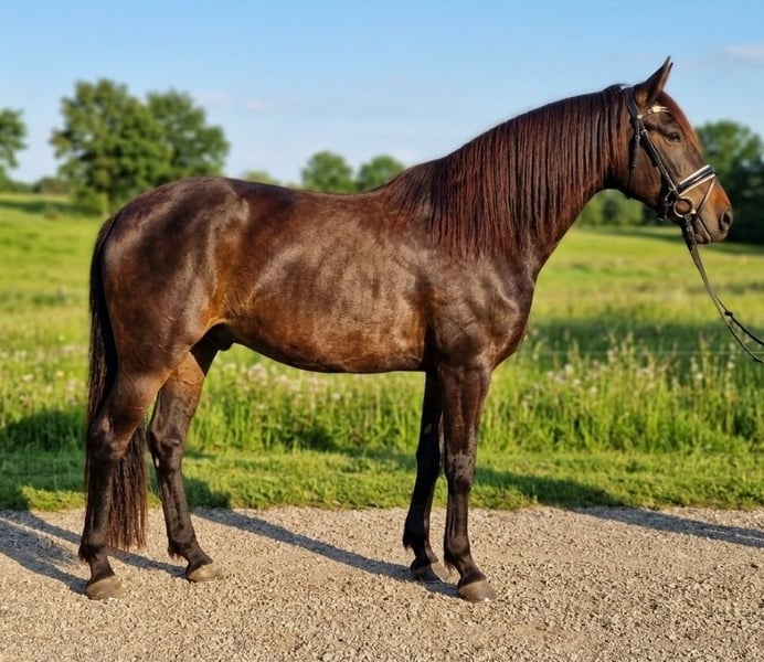 Ein richtiges Herzenspferd unsere Mercedes! Bist du auf der Suche nach einem echten „Spaßmobil“, das mit dir durch dick und dünn geht? Unsere wunderschöne Mercedes, (160 cm große Azteka-Mix-Stute) vereint Erfahrung mit einem absolut ehrlichen Charakter. Sie ist die perfekte Mischung für Reiter, die eine mutige Partnerin suchen, die weder faul noch sehr schreckhaft ist. Was sie besonders auszeichnet, ist ihre feine Ausbildung: Sie hört perfekt auf Stimmkommandos und ist im Gelände wirklich cool bei neuen Sachen! Quer Feld ein? Ja ok! Treppen Hochzeiten? Auch kein Problem! Steilen Abhang runter? Machen wir! Halt ein richtiges *Spaß mobil!* Egal ob ein mutiger Galopp über die Stoppelfelder oder ein entspannter Ritt am langen Zügel – Mercedes ist immer artig, unerschrocken und für jeden Unfug zu haben. Ihre sensible Seite zeigt sich lediglich bei Männern, besonders wenn diese Stöcke in der Hand halten – hier braucht sie einen Moment Vertrauen, bleibt dabei aber stets händelbar. Sie ist kerngesund, absolut verträglich mit anderen Pferden und einfach ein Schatz im täglichen Umgang. Wenn du eine unkomplizierte, kräftige Partnerin suchst, die bereit für gemeinsame Abenteuer ist, freut sie sich auf deinen Besuch! Alle Angaben ohne Gewähr Keine Verfügung keine Raten // Transport überall hin möglich! Probereiten mo-fr 25€ Sa-so/feiertags 30€ Vorführen (immer) 10€ Meldet euch gerne! 01703718888