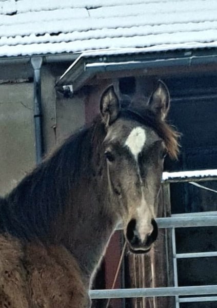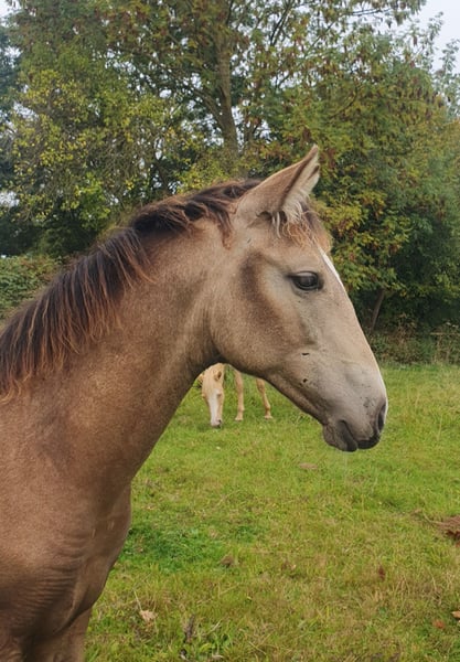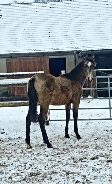 ✨ Absolute Ausnahme-Offerte: Azteca Jungstute in Traumfarbe ✨ Zum Verkauf steht eine vielversprechende, 1-jährige Azteca B Stute, die nicht nur durch ihre Optik, sondern auch durch ihren Charakter und ihre Gangqualität besticht. Evita wird in den USA registriert und bekommt Papiere der AAHIA Eckdaten: Rasse: Azteca (Lusitano x Azteca D) Die Mutter ist eine direkte Tochter vom portugiesischen Olympia Teilnehmer Viheste AR. Der Vater ist mein Azteca Nachwuchshengst SOL shining Star PR, direkter Sohn von Paco Martis Ausnahmehengst SOL PM. Elterntiere sowie die Oma sind vor Ort. Alter: 1 Jahr (geb. 05/25) Farbe: Buckskin Sooty (wird ein wunderschönes, dunkles Gold mit markanter Schattierung) Geschätztes Endmaß: ca. 160 cm Standort: 32257 Charakter & Gebäude Diese junge Dame vereint das Beste aus zwei Welten: Den Stolz, Mut und die Eleganz der portugiesischen Pferde gepaart mit der Gelassenheit und dem korrekten Fundament des Aztecas. (letzte Fotos zeigen den Vater) Sie zeigt sich altersgemäß neugierig, menschenbezogen und sehr lernwillig. Sie kennt das Fohlen-ABC, Anhänger fahren, gibt brav die Hufe und lässt sich überall anfassen. In der Herde zeigt sie sich sozial und unerschrocken. Potential Durch ihren kompakten, kräftigen Körperbau und ihre Wendigkeit eignet sie sich später hervorragend für: Working Equitation (ihre Paradedisziplin!) Freizeitreiten auf hohem Niveau Show & Liberty Zucht (aufgrund der seltenen Farbe und des korrekten Gebäudes) Aufzucht Sie wächst artgerecht im Herdenverband mit viel Bewegung auf. Sie ist regelmäßig entwurmt, dem Schmied vorgestellt und erhält hochwertiges Mineralfutter für eine optimale Skelettentwicklung. Ich suche für diese besondere Stute ein förderndes 5-Sterne-Zuhause mit Familienanschluss Kontakt: Bei ernsthaftem Interesse freuen Evita und ich uns über eine Nachricht.