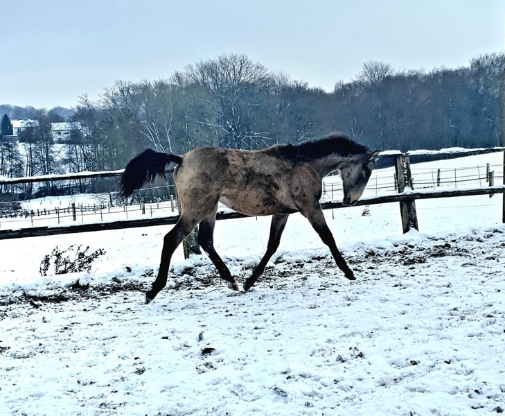 ✨ Exceptional Offer: Azteca Foal Mare in a Dream Color ✨ For sale is a promising 1-year-old Azteca B mare that impresses not only with her appearance but also with her character and gait quality. Evita is registered in the USA and will receive papers from the AAHIA. Details: Breed: Azteca (Lusitano x Azteca D) Her dam is a direct daughter of the Portuguese Olympic participant Viheste AR. Her sire is my Azteca young stallion SOL Shining Star PR, a direct son of the exceptional stallion Paco Marti, SOL PM. Both parents and the grandmother are on-site. Age: 1 year (born 05/2022) Color: Buckskin Sooty (will develop into a beautiful, dark gold with striking shading) Estimated final height: approx. 16.1 hh Location: 32257 Character & Conformation This young lady combines the best of two worlds: the pride, courage, and elegance of Portuguese horses paired with the calmness and correct build of the Azteca breed. (Last photos show her sire) She is curious, human-oriented, and very eager to learn, age-appropriately. She knows the basics of foal handling, trailer loading, is happy to give her hooves, and allows herself to be touched everywhere. Within the herd, she is social and fearless. Potential Thanks to her compact, strong build and agility, she is ideally suited for: - Working Equitation (her showcase discipline!) - High-level leisure riding - Show & Liberty - Breeding (due to her rare color and correct conformation) Raising She is raised appropriately in a herd environment with plenty of movement. She is regularly dewormed, introduced to the blacksmith, and receives high-quality mineral feed for optimal skeletal development. I am looking for a nurturing 5-star home with a family environment for this special mare. Contact: If you are genuinely interested, Evita and I look forward to hearing from you.