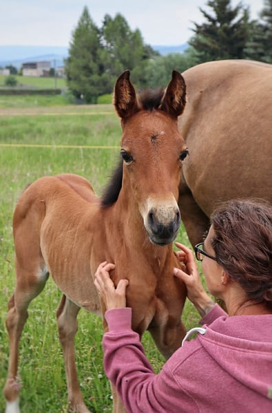 Suna ist die schmeichelndste Stute die ich kenne. Mit ihrem Charme und ihren lieben Augen zieht sich viele in ihren Bann. Suna ist 3 Jahre alt und bei uns geschlüpft. Es war ein atemberaubendes Erlebnis und ich schreibe diese Anzeige auch nicht gern. Wir lieben sie hier wirklich sehr aber wir können ihr zeitlich nicht gerecht werden. Sie braucht Kontakt zu jüngeren Pferden aber vor allem braucht sie Arbeit/ Beschäftigung im Sinne von regelmäßiger Bodenarbeit. Sie kennt schon etwas Horseman. Das Zirkeln im Roundpen, Weichen und Planenspiele mag sie. Hängertraining kennt sie auch etwas aber noch ungenügend. Wir kommen zu selten dazu. Suna ist noch roh, hätte jedoch einen Platz ab März zum Beritt bei Nina Gassner im savvy center. Was Suna noch braucht ist abgewogenes Futter, dies sollte in engmaschigen Netzen, in sogenannten Slowfeeder Netzen gereicht werden. Sie ist eben zur Hälfte ein PRE und kommt mit unseren fetten Wiesen und dem recht süß schmeckenden Heu gesundheitlich nicht zurecht. Wir hatten aus Nichtwissen aus diesem Grund extreme Probleme mit ihrer Gesundheit was wir jedoch durch Konsequenz gerade biegen konnten, eine Fressbremse ist aus diesem Grund auf der Wiese unerlässlich. Weiteres gern falls echtes Interesse besteht.