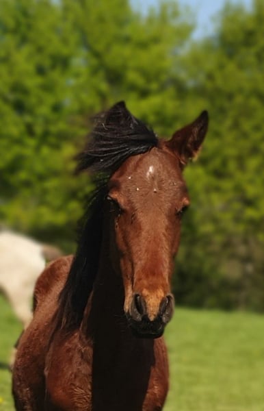Young Azteca Stallion with Potential Seeks Loving Hands I am reluctantly selling my promising brown Azteca yearling stallion. This handsome young horse is a successful blend of PRE and Quarter Horse, which not only gives him a great appearance but also a lot of potential for the future. His good, expansive movements highlight his quality. He is growing up in a species-appropriate manner and is well mineralized. We see him as a talented partner for ambitious riders in working equitation or the upper leisure sector. Pepe is a little horse that quickly wins hearts with his curiosity and charming nature. If you are looking for a special young horse that wants to be nurtured with love and know-how, please feel free to contact me.