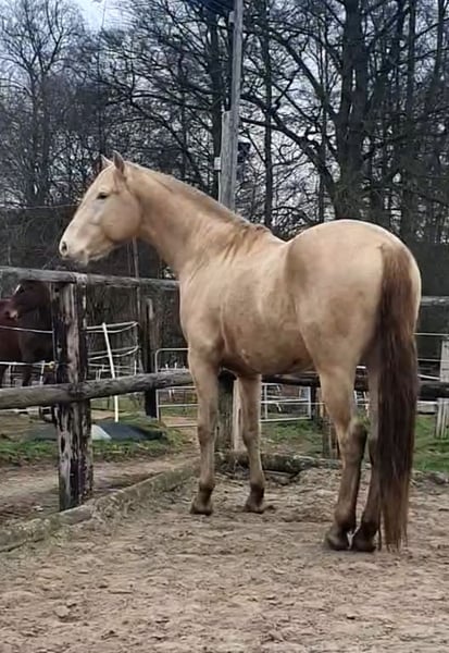 "SOL shining Star" Azteca (PRE x Paint Horse) von 2022. Sein Vater ist der berühmte Hengst SOL PM von Paco Marti. Außergewöhnliche Farbe in Amber Champagne/ Pearl. AaEeChPRL. Endmaß ca 1,62 m sehr kräftiges, korrektes Fundament mit einem Traumcharakter. SOL hat Papiere von der AAHIA und ist dort als Vererber registriert. 2025 sind seine ersten drei, mehr als gelungenen, Fohlen von ihm geboren. Er hat unsere Erwartungen in punkto Exterieur und Farbe mehr als übertroffen. Quarter Horse, Paint Horse, PRE und Lusitanos bekommen Papiere von der AAHIA. Steht erstmalig für 2026 im Natursprung zur Verfügung. Frühbucherrabatt bei Buchung bis Ende Januar 26 600 €