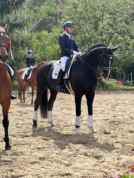 Beautiful Black Gelding – Dressage Horse For sale is an elegant and well-trained 10-year-old gelding. Nashville impresses with his impressive height of 177 cm and his attractive appearance. He is a reliable partner for dressage and has already achieved multiple wins in M* classes and placings in M** with amateurs. Nashville has a balanced temperament and is friendly in handling. He is suitable for advanced riders looking to deepen their dressage training, as well as for ambitious leisure riders seeking a dependable partner. No known health issues No current health certificate (AKU) available Location: 14621 Schönwalde-Glien If you are interested or require further information, please feel free to contact me. Trial rides are available by appointment at any time.