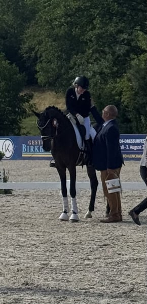 This stunning son of Fürst Zonik immediately catches the eye with his exceptional natural gaits and beautiful conformation. With limited riding, he was able to impress right from his first and only competition, earning the vice state champion title. He was very well-behaved and calm both in the trailer and during grooming. He is a pleasure to ride, easy to handle with consistent contact, and has enough talent for the big sport. He is straightforward and well-mannered in handling. You don't need to ride him every day, and you can still mount and go at ease. A horse that always brings joy 😊 Good TÜV report available. Please feel free to contact us at 01725624754 if interested.