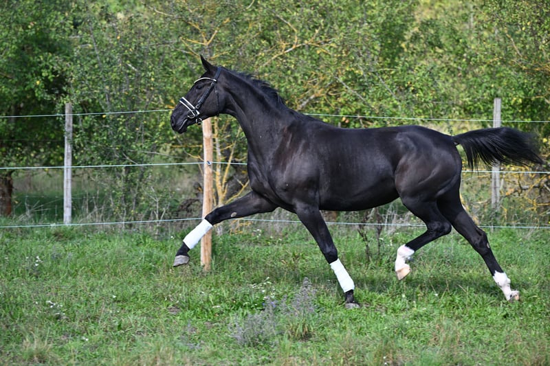 Eine totschicke Stute mit bestem Papier und einer gewaltigen Bewegungsqualität. Sattel, Trense, Ausbinder und Doppellonge waren selbstverständlich für die Stute. Da ich alleine anreite, ist sie mir noch ein wenig zu Umweltorientiert in der Reithalle. Daher bekommt sie hierfür ein bisschen mehr Zeit, um in der Halle mehr Ruhe zu kommen, wenn ich ohne Führer drauf gehe. Die Stute kommt neugierig auf einen zu und ist freundlich im Umgang.