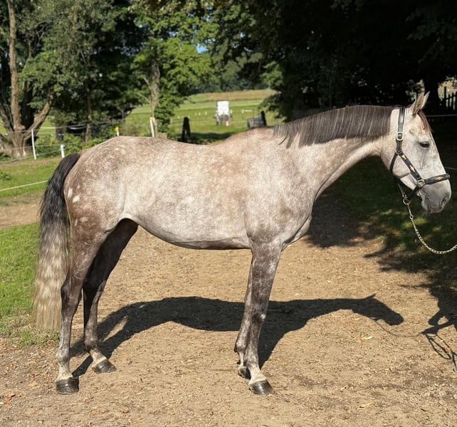 Na sprzedaż wystawiamy naszą klacz z Baden-Württembergu, która wyróżnia się wysoką jakością i doskonałymi predyspozycjami do wyższych zadań. Klacz ta jest już plasowana do klasy M, zawsze zmotywowana, szczera i gotowa do skoków. W codziennym kontakcie jest bardzo przyjazna, otwarta na człowieka i przyjazna dla dzieci. Jest spokojna podczas transportu, nie boi się podkuwania, a na zawodach czy w obcym otoczeniu zachowuje się zrelaksowana i zrównoważona. Jej pochodzenie również nie pozostawia nic do życzenia — Magnus Romeo × Carolus II: jej ojciec Magnus Romeo odniósł sukcesy na poziomie Pucharu Świata, jeżdżony przez Hansa-Dietera Drehera, a linia matczyna gwarantuje talent, technikę i gotowość do rywalizacji. Klacz ta nadaje się zarówno dla ambitnych amatorów, jak i do dalszego sportu. Posiada doskonałe predyspozycje do wyższych zadań. Dodatkowe informacje, filmy i możliwość jazdy próbnej chętnie na życzenie.