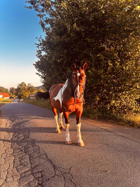 Zum Verkauf steht ein beeindruckender Polnischer Warmblut - Wallach.Dieser charmante Schecke besticht nicht nur durch sein elegantes Erscheinungsbild, sondern auch durch seine angenehme Größe mit einem Stockmaß von 160cm. Kilf kennt Offenstall und Box.Er geht in der Gruppe so wie auch alleine ins Gelände. Er eignet sich hervorragend für den Freizeitbereich kennt Festzüge und Halle. Klif benötigt einen erfahrenen Reiter, der zügelunabhängig reiten kann.Er ist ehrgeizig und will gearbeitet werden. Wenn Ihr auf der Suche nach einem treuen Freizeitpartner seit, der mit euch durch dick und dünn geht, dann könnte Klif genau der richtige für Euch sein. Bei Interesse freuen wir uns auf deine Kontaktaufnahme.