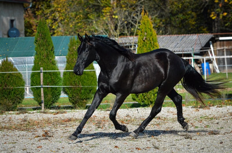 Onze Nightshift Devil M. is geboren in mei 2023. Hij is heel lief, dapper, vriendelijk en nieuwsgierig. Met zijn bewegingen en rustige karakter is hij uitstekend geschikt voor dressuur. Zijn verwachte stokmaat is 170. Hij leeft in de open stal in een grote kudde, maar hij is ook gewend aan boxstalling. Hij laadt makkelijk op de trailer en rijdt als een pro. We kunnen transport overal in de EU organiseren. Voor meer informatie bel of sms (via WhatsApp) +386 31 554 107 (Miha). We spreken Engels, Duits, Sloveens en Kroatisch.