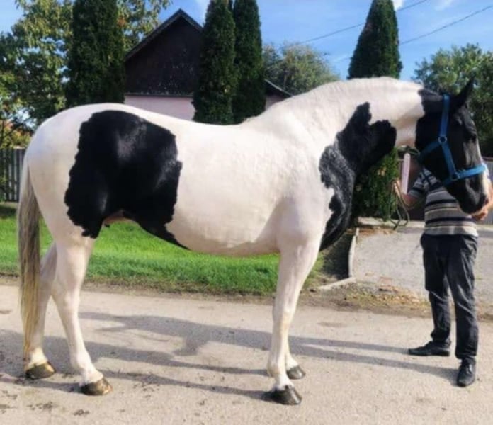 **For Sale: Stunning Baroque Pinto Mare** Meet our exquisite Baroque Pinto mare, born in 2014 and standing tall at 170 cm. This beautiful horse is not only a striking visual with her unique coat but also boasts exceptional breeding that highlights her noble lineage. Her gentle temperament and graceful movements make her suitable for a variety of disciplines, whether you're looking for a companion for leisurely rides or a partner for more advanced training. She is well-mannered, easy to handle, and has a solid foundation in groundwork. This mare is ready to find her forever home with someone who appreciates her beauty and potential. Don’t miss the chance to own this remarkable horse! For more information and to arrange a viewing, please contact us. Contact via WhatsApp +36708820041 or email laurakokavecz728@gmail.com