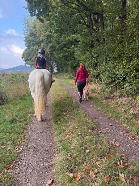 Ich habe eine 12 Jahre alte Stute abzugeben, sie wurde mit fünf eingeritten und ist im Gelände ein Traum, nicht die Schnellste, immer handelbar auch Gebisslos. Da ich sie vor vier Jahren Röntgen lassen habe und bei den Hufen Verdacht auf Hufrolle und ein leichter Engstand in der Wirbelsäule, habe ich sie nur vom Boden gearbeitet und im Gelände, nach zwei Jahren zur Kontrolle nochmal Röntgen lassen, es ergab sich keine Änderung. Sie ist nie lahm gewesen, habe trotzdem drauf geachtet, dass enge Wendungen vermieden werden und sie maximal 4xdie Woche im Gelände geritten. Sie ist Barhufer und hat fürs Gelände Hufschuhe. Allein ist sie sehr guckig, zu Zweit eine Lebensversicherung. Da ich mittlerweile zu schwer für sie bin (sie trägt maximal 65 kg) wird sie zweimal die Woche von einem kleinen Mädchen geritten. Sie ist ein Charakterlich starkes Pferd und braucht sichere Führung, dann ist sie ein Traum. Auf unsicheres Verhalten reagiert sie mit Ignoranz. Ich suche ein Platz im Offenstall mit Gesellschaft und vernünftigen Weidemanagement. Der Preis ist mir nicht wichtig, ich möchte das sie es gut hat. Boxenhaltung auch nur nachts geht nicht, dass stresst sie!! Wer also ein Pferd sucht für schöne Geländeritte, Liberty/ Bodenarbeit und keine Dressur oder Springambitionen hat, nicht zu schwer ist und ein Offenstall bieten kann, darf sich gerne melden:-) Ich habe sie seit sieben Jahren und es fällt mir nicht leicht, doch als Alleinerziehende Mutter und Tochter, die kein Interesse hat, ist es einfach auch die finanzielle Belastung. die mich zu diesem Schritt bringt.