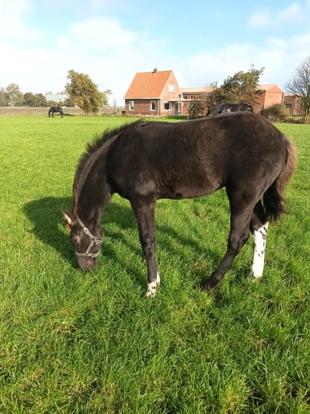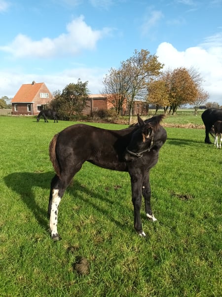 Foal born on June 25, 2025. Name: Phaedra fan 'e Witewei Mother: Alemke fan Blitha (Friesian), height 16.8 hh Sire: Wobke 403 x Jasper 366 (see document) Registered in the Barock Pinto studbook Father: Wodan Ster 82, height 16.8 hh Registered in the Barock Pinto studbook Champion as of February 20, 2024 The foal has a microchip. Barock Pinto studbook papers and passport are being processed.