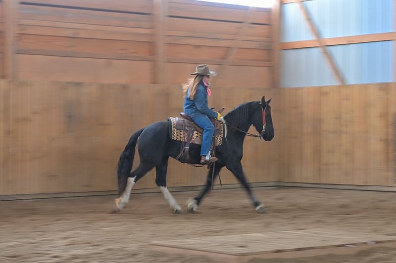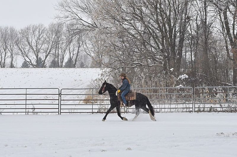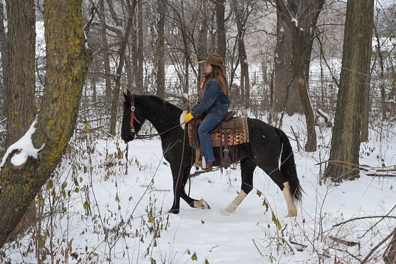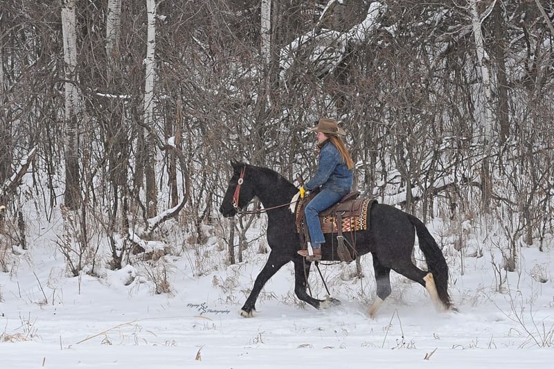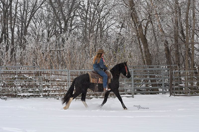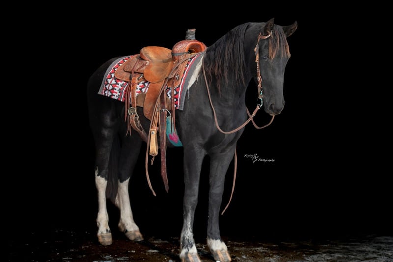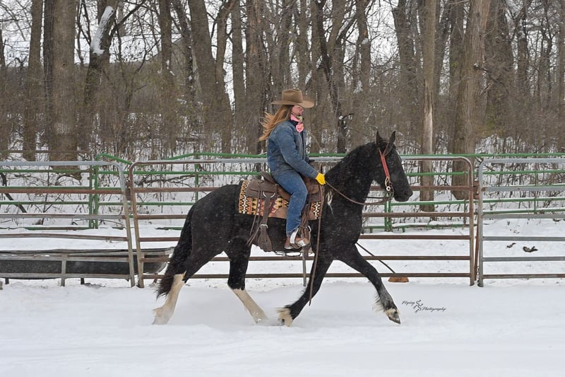 ⚜️𝐓𝐇𝐄 𝓗𝓮𝓻𝓲𝓽𝓪𝓰𝓮 𝐖𝐢𝐧𝐭𝐞𝐫 𝓒𝓵𝓪𝓼𝓼𝓲𝓬⚜️ Happening now thru MONDAY | DECEMBER 29th - Available EXCLUSIVELY on HorseBid's website! For more details and to register visit: www.Horsebid.com CONSIGNOR CONTACT: Jerry Kehoe (Leah Nutt - Agent) Leah: 320-279-7010 LOCATION: Hastings, MN BREED: Baroque Pinto REGISTERED: Yes REGISTERED NAME: Kehoe's Winnie COLOR: Black Tobiano HEIGHT: 14.3 AGE: 2 GENDER: Mare Winnie is a coming 3 year old that has all of the class and style you could ask for. Her breeding is as elegant as she is, 75% Friesian and 25% paint; a BAROQUE PINTO! Registered in the Friesian Heritage Horse and Sporthorse International Registry. Winnie has been started slow and correct, having over 30 days of riding and 6 months of driving. She will walk, trot, and canter both directions with ease. She picks up her leads on cue, and has smooth transitions for her level of training. Winnie collects when asked and moves off of leg pressure as well. She is a free mover that has an absolutely gorgeous extended trot! She stands patiently at a mounting block, rides off quietly, and aims to please with every ride. Winnie has that in your pocket disposition that everyone loves, but she is also very respectful of your space. Winnie is a direct result of our breeding program, and destined for the show pen. We own her mother, and have several of her siblings. She has been with us since birth besides for her time in training. Winnie will excel in an English training program, or make a flashy carriage horse. The opportunities are endless for her! Whether you enjoy the excitement of competing at shows, or want to stroll through central park in a carriage; Winnie has all of the potential to take you there. Winnie is easy to catch, and is the first one to meet you when turned out. She gets along well with other pasture mates. She loads and hauls well, stands for the farrier, and always acts like a lady with no bad habits. Winnie has a very good mind, and has done phenomenal in training. We are proud to offer this sweet mare, and know that you will love her as much as we have. For any additional information, or if you would like to meet Winnie prior to the auction ending, contact Leah (agent) at 320-279-7010.