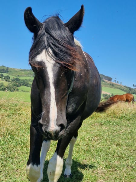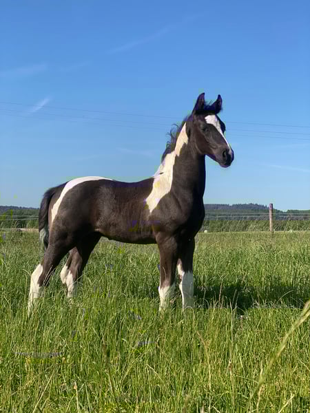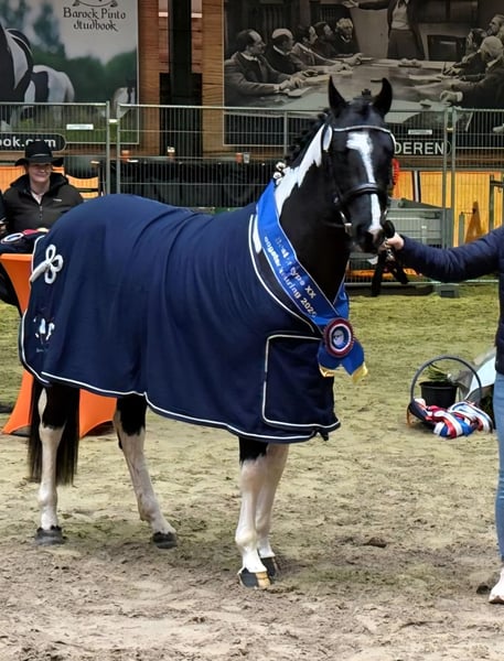 Zum Verkauf steht ein im April 23 geborener Barockpinto mit einer derzeitigen Größe von 160cm. Geschätztes Endmass ca 165cm. In Assen gekört, Star approved mit 44 Punkten. Er ist sehr brav an der Hand und bei der Arbeit. Besichtigung auf Anfrage möglich.