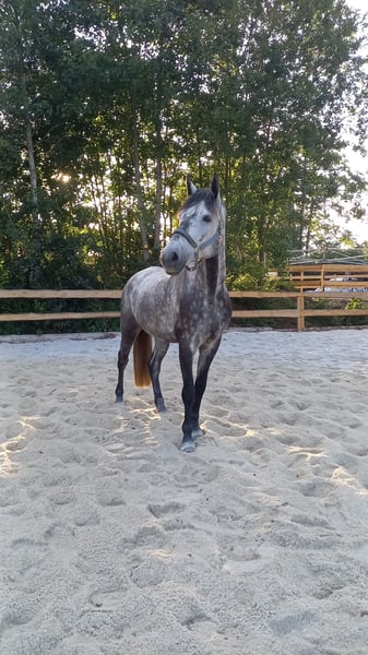 Après mûre réflexion, j'ai pris la décision difficile de confier mon hongre Warmblood de 10 ans à de bonnes mains, car je ne peux plus lui accorder le temps et les ressources financières nécessaires. Il a maintenant derrière lui une longue période de convalescence (dommages au tendon fléchisseur et ligne de fissure, les deux étant complètement guéris) et il a été opéré du chip à la mi-mai 2025 (dans les deux articulations du tarse). Il est donc important qu'il soit réévalué lentement au cours des prochains mois. Selon le vétérinaire, les chances sont bonnes qu'il puisse redevenir montable normalement, cependant, il restera un cheval de loisir, avec lequel on peut faire beaucoup de travail en extérieur, du travail au sol et, si son passé le permet, faire un peu de dressage et quelques sauts. Au sol, il a besoin d'une personne expérimentée qui lui donne de la sécurité et fixe des limites claires, car il aime tester (comme par exemple lors des promenades ou du chargement). Cependant, une fois que l'on a gagné son respect, c'est un véritable trésor et il fait tout pour son cavalier. En monture, il est très gentil et s'efforce de plaire au cavalier. Il aime sortir en extérieur et y est toujours contrôlable et intrépide. Lors des sauts, il s'est toujours beaucoup amusé et a toujours été très fiable. Matador cherche un endroit avec beaucoup d'espace – un abri ouvert ou un accès quotidien à un pré seraient idéaux. Il est plutôt dominant et très joueur avec d'autres chevaux. Ce n'est pas un cheval pour débutants et il sera confié uniquement à des mains expérimentées et affectueuses. Je souhaite pour lui quelqu'un qui lui offre un foyer adapté à ses besoins. Pour moi, l'espace prime définitivement sur le prix ! N'hésitez pas à me contacter par WhatsApp : +49 15903768921
