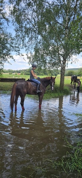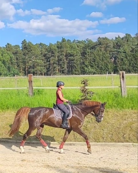 **Eleganter Bayerischer Warmblut-Wallach – Jahrgang 2012, Dunkelfuchs, 182 cm** Aus privaten Gründen verkaufe ich schweren Herzens mein tolles Pferd, Belami. Zum Verkauf steht ein beeindruckender Bayerischer Warmblut-Wallach, der sich durch seine elegante Erscheinung auszeichnet. Geboren im Jahr 2012, ist dieser Dunkelfuchs mit einem Stockmaß von 182 cm ein wahrer Blickfang und bietet optimale Voraussetzungen für ambitionierte Reiter. Der Wallach ist gut geritten und zeigt eine harmonische Grundausbildung. Seine Bewegungen sind kraftvoll, elastisch und taktklar, was ihn zu einem vielversprechenden Partner für den Reitsport macht. Durch seine ausgeglichene und kooperative Art lässt er sich angenehm reiten. Sein elegantes Erscheinungsbild, verbunden mit seinem guten Charakter, machen ihn zu einem zuverlässigen Partner im täglichen Training. Er ist schmiede- und verladefromm. Er wurde als fünfjähriger in einer Fachklinik in München, am Kehlkopf operiert, da er das Pfeifen hatte. Er hat dadurch keine Beeinträchtigungen. Dies wurde auch tierärztlich bestätigt. Bei Interesse freuen wir uns auf Ihre Kontaktaufnahme, um weitere Details zu besprechen und einen persönlichen Eindruck zu vermitteln.