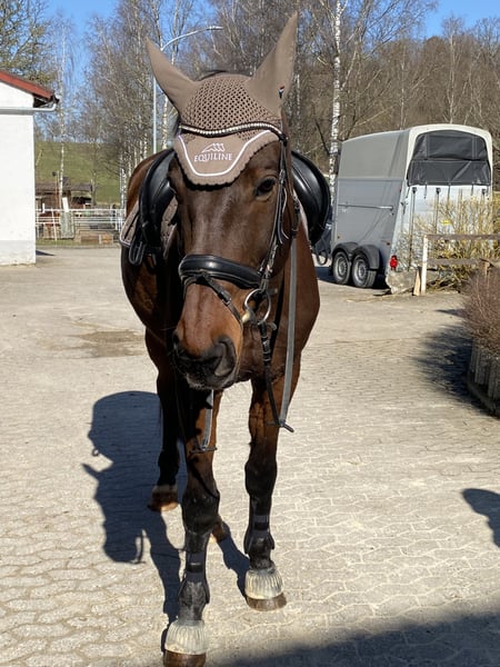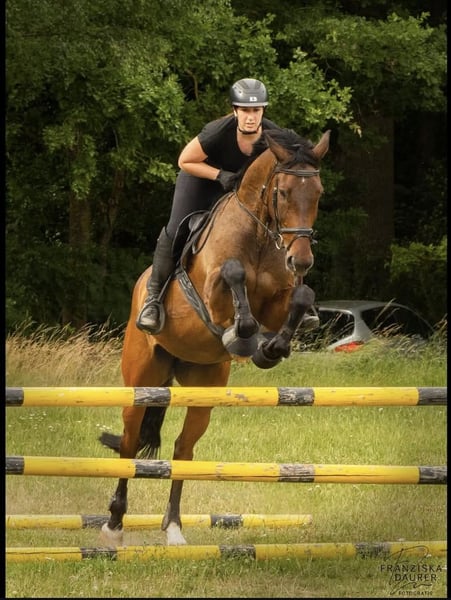 Wunderschöner brauner Bayerischer Warmblut-Wallach sucht Herzensmensch Schweren Herzens suche ich für meinen 15-jährigen Bayerischen Warmblut-Wallach ein neues 5*-Zuhause. Er ist ein hübscher, ausdrucksstarker Wallach, mit einem verschmusten Charakter und solider Grundausbildung. Er ist auf A-Niveau freizeitmäßig geritten und zeigt dabei besonders viel Freude und Talent am Springen. Hier liegt definitiv sein Potenzial – er hat unglaublich viel Spaß und ist hier ein sehr sicherer Partner. Er macht einen tollen Sprung und springt immer ab, auch wenn er mal ein wenig unpassend am Sprung ankommt. Keine Unarten wie parken, vorbeiziehen oder bocken. Im täglichen Umgang ist er brav und artig, auch beim Schmied gibt es keinerlei Probleme. Er ist menschenbezogen und bindet sich eng an seine Bezugsperson. Im Gelände braucht er jedoch einen sehr sicheren, ruhigen und durchsetzungsfähigen Reitpartner. Dort ist er unsicher und orientiert sich stark am Reiter. Mit der richtigen Führung und genügend Vertrauen bin ich mir aber sicher, dass sich diese Unsicherheit weiter verbessern lässt. Auch das Verladen ist leider nicht seine Lieblingsbeschäftigung und er braucht hierbei Geduld und Routine. Er ist kein Anfängerpferd, sondern sucht einen erfahrenen Menschen mit Gefühl, Klarheit und Herz, der Freude daran hat, mit ihm zusammenzuwachsen. Wenn man sein Vertrauen gewonnen hat, bekommt man ein ehrliches, motiviertes Pferd, das gefallen möchte. Coco bekommt sein Heu „gewässert“, das bekommt ihm besser und ich wünsche mir, dass das auch so in seinem neuen Zuhause gewährleistet werden kann. Ich suche ein liebevolles, förderndes neues Zuhause, in dem er nicht nur „funktionieren“, sondern Pferd sein darf. Platz vor Preis – er wird nur in allerbeste Hände abgegeben!