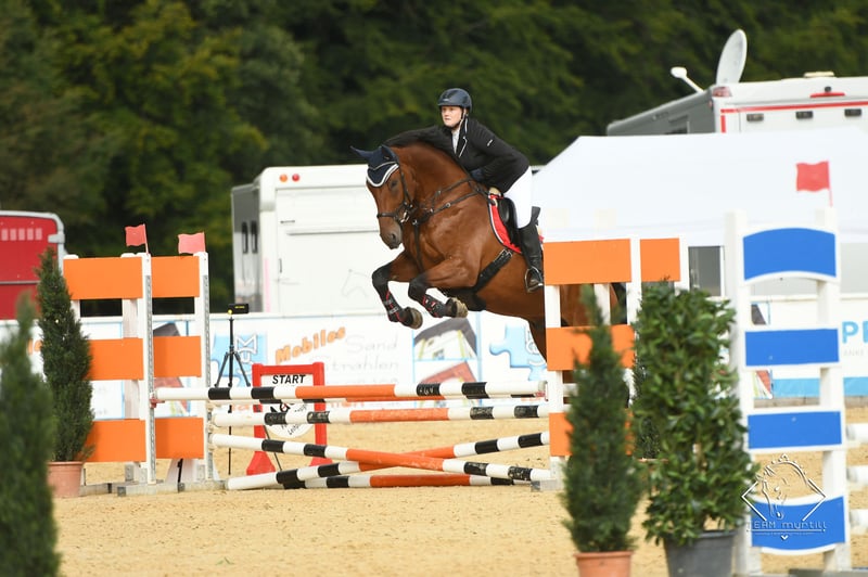 schicker, braver Wallach schweren Herzens nur in absolut gute Hände abzugeben (aus gesundheitlichen Gründen der Reiterin momentan nicht im Training). FranzFerdinand ist eine Seele von Pferd und für jeden Spass zu haben, egal ob für den Freizeit- oder Turnierreiter. Er kennt longieren, Doppellonge, Bodenarbeit, hat auch schon meinen Sohn im Schlitten gezogen, geht ins Wasser, im Springen bis L platziert (er will immer über den Sprung - verweigern kennt er nicht), geht gerne ins Gelände, egal ob alleine oder in der Gruppe, ist Volksfestauszug gegangen. Trotzdem ist er kein reines Anfängerpferd, da er über reichlich Go verfügt und auch mal seine Freude in Form von kleinen Bocksprüngen (nie bösartig) zeigt, kein steigen. Ausserdem braucht er eine konsequente Erziehung, da er weiss, dass er der stärke ist. Schmiede- und verladefromm (aktuell Barhuf), ebenso brav beim Tierarzt. Wurde regelmäßig dem Osteopathen vorgestellt, Zähne wurden regelmäßig kontrolliert und gemacht, sowie geimpft und entwurmt. FranzFerdinand steht bei mir aktuell im Offenstall mit 2 weiteren Wallachen, er ist herdenverträglich, auch mit Ponys, ranghoch. FranzFerdinand ist 15 Jahre alt und 1,80m gross. Hatte 6 jährig am linken Hinterbein eine Sprunggelenksfraktur, diese ist komplett und vollständig ausgeheilt. 8 jährig kam er zu mir und 9 jährig erst in den Sport. Ging nie Aufgrund dieses Befundes lahm. Ich würde mir ein liebevolles Zuhause im Offenstall oder mit viel Weidegang wünschen. Sein Kumpel Fritzi (das Pony auf dem Video, ist auch käuflich zu erwerben) Standort ist 84130. Bitte nur bei ernstem Interesse gerne unter 0151 / 73021003 melden. Das gesamte Zubehör, kann gegen Aufpreis ebenfalls erworben werden (von der Abschwitzdecke bis zum Sattel alles). Preis VB: incl. Zubehör 5999.-€