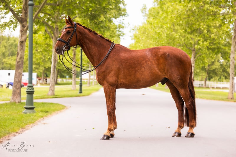 Vendo caballo de sangre caliente bávaro – elegante potro Se ofrece un hermoso caballo de sangre caliente bávaro, nacido en 2008. Con su llamativo color alazán y una altura de 172 cm, es un verdadero atractivo tanto a nivel visual como en tamaño. Este caballo es ideal como caballo de enseñanza o de ocio, y posee la disposición necesaria además de un temperamento agradable. Busca un buen destino final con conexión familiar y una crianza adecuada. El potro está sano, montado regularmente y bien cuidado. Destaca por su carácter amistoso y su disposición a rendir. Si está interesado o tiene alguna pregunta, no dude en contactarme. ¡Agende una visita y una prueba de manejo! ¡Prioridad a la calidad antes que al precio!