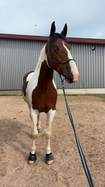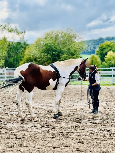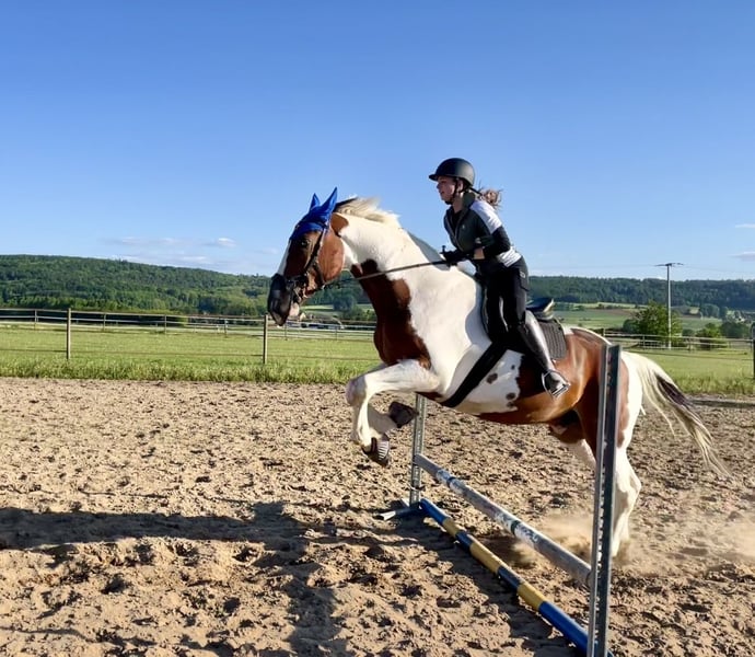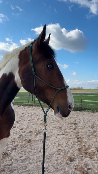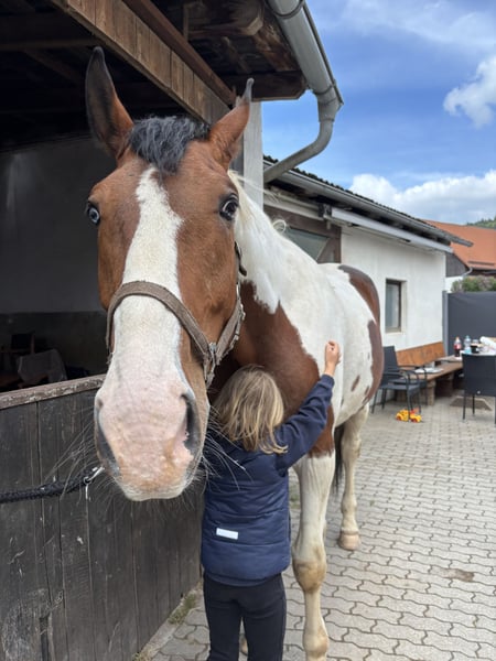 Justy is a true gem – a large-framed, good-natured gelding with a wonderful character. Despite his impressive size, he is always friendly, uncomplicated, and pleasant to handle – a gentle giant, just as one would wish for. He is suitable for both the ambitious leisure rider and dressage enthusiast, but he also enjoys jumping from time to time. Out on the trails, Justy is reliable, whether alone or in a group – he is always well-behaved and calm. 🔹 Breed: Bavarian Warmblood 🔹 Age: 6 years (born 05/2018) 🔹 Gender: Gelding 🔹 Height: approximately 178 cm 🔹 Use: Dressage, leisure, trails 🔹 Character: well-behaved, people-oriented, strong nerves 🔹 Medical report available – no restrictions, details can be discussed personally Justy brings not only size but also heart and intelligence. He is looking for a loving home with someone who appreciates his value. Trial rides are possible for a fee of 30 euros (which will be deducted from the purchase price).