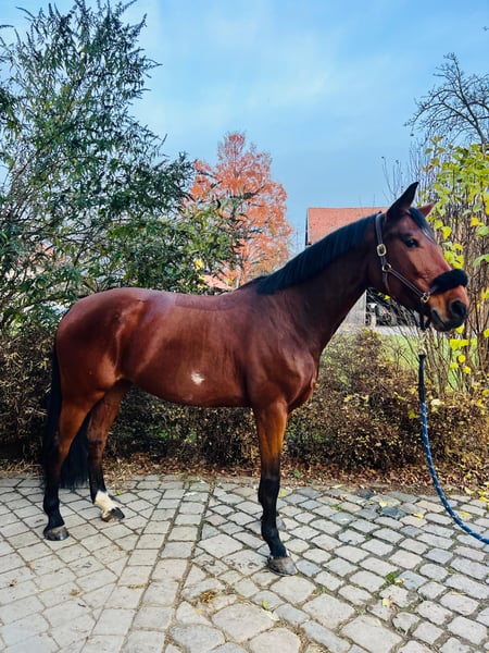 Carlotta is a very blood-type, ambitious mare. She is motivated every day and eager to work. She has a nice pull to the jump, but does not become overly strong. Thanks to her uncomplicated nature, she is ideally suited for amateurs or pony riders transitioning to horses. Despite her go, she is always easy to handle. She has never bucked or reared and is absolutely well-behaved in the field as well. She is by Harley VDL out of Grand Coeur. Her mother was a multiple winner in show jumping at 140/145 cm and placed up to 150 cm. She has inherited her ambition and excellent attitude towards sport from her lineage. Carlotta has over 40 placings in show jumping classes from 125 to 140 cm, including 15 first places and 12 second places in M*/M** level competitions. Please feel free to contact me for more information personally at 0171 2233072.