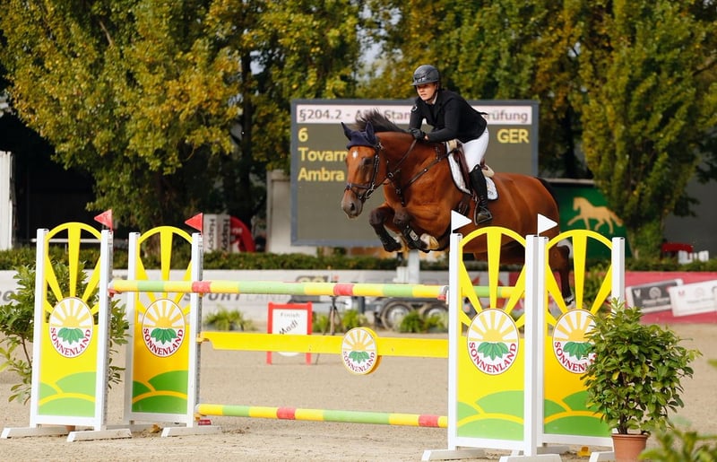 Ambra è una cavalla mare di 13 anni, con successo fino a un'altezza di 1,40 m, anche nella categoria Junior. In campo jumping dimostra buona energia e possiede un ottimo talento negli ostacoli, il che rende sempre il suo approccio molto piacevole. Nel maneggio è estremamente semplice e molto dolce. Per ulteriori informazioni, non esitate a contattare il numero 015127518957.