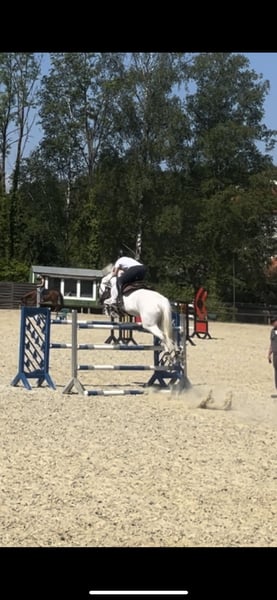 Zum Verkauf steht eine schöne Schimmelstute, tragend von Newmarket Eckdaten: Abstammung Stute: Cachas x Lancer III Abstammung Hengst: Chacoon Blue x Numero Uno Deckdatum: 22.04.2025 Hengststation Nijhof, der Hengst ist international bis 1,40 m erfolgreich. Stute (Geburtsjahr 2011): Carrera hat mehrfach M und L gewonnen, S fertig im Training gesprungen. Wir haben Carrera 3 jährig gekauft und bis zur schweren Klasse ausgebildet. In der Zeit lief sie immer verletzungsfrei und wir konnten einige Siege holen. Kann also auch nach der Zucht geritten werden. Aufgrund von Zuchtaufgabe müssen wir uns leider von ihr trennen… Nur in beste Hände abzugeben!