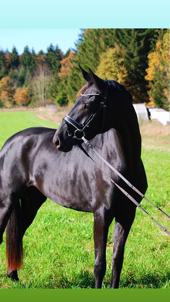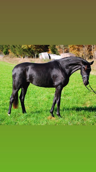 Diese wunderschöne Lackschwarze Stute überzeugt durch ihre 3 sehr guten Grundgangarten sowie ihre gute Rittigkeit. Im Umgang absolut brav und freundlich, auch mit anderen Pferden. Sie zeigt viel Talent für die versammelten Lektionen. Durch ihren guten Grundschwung behält sie immer sicher den Takt auch in engeren Wendungen. Guter tüv liegt vor. Bei Interesse gerne melden unter 01725624754