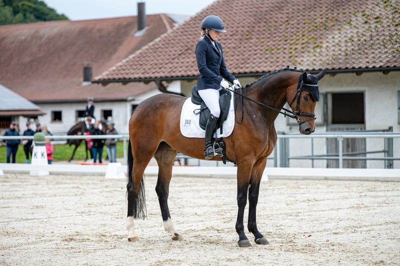 Die Stute ist 2020 bei uns auf dem Hof geboren und wurde um Januar 2025 schonend angeritten, nachdem sie während ihrer Aufzucht mit Artgenossen in einem offenstall mit großer Weide stand. Sie hat dieses Jahr ihre erste Dressurpferde A gemeistert, in der sie sehr guten Noten erreichen konnte. Sie ist sehr brav und liebevoll im Umgang und hat auch beim anreiten sowie in der jetztigen Arbeite keine Unarten gezeigt. Bei Interesse gerne melden +491712089755 Um Reittourismus zu vermeiden 30€ pro Probereiten. Diese werden beim Kauf selbstverständlich angerechnet.