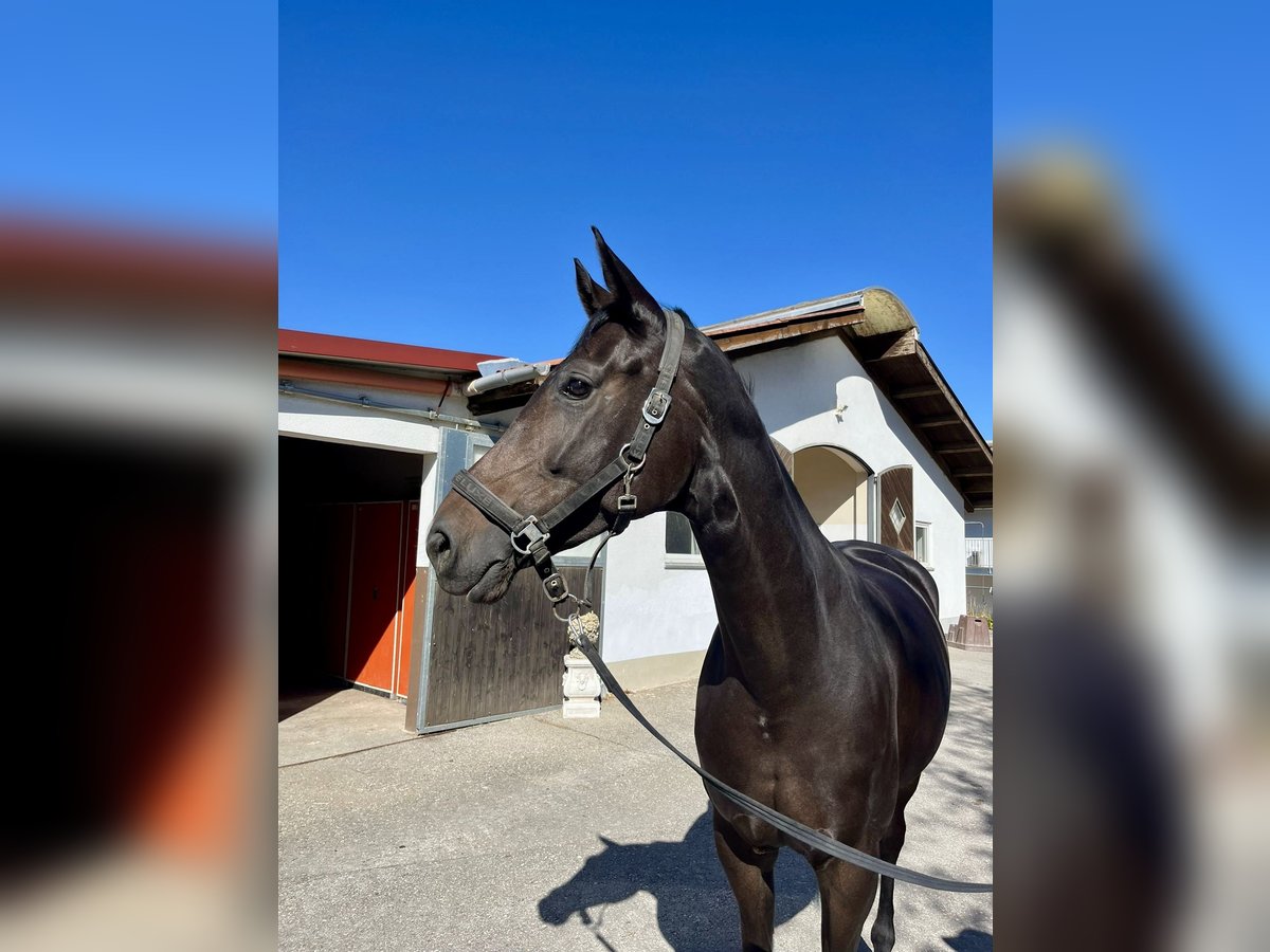 Beautiful dark brown five-year-old mare for sale. Fürstin Filippa moves with great energy and has a lovely gallop. She was bred by us and is currently in training with Thomas Hahn. Unfortunately, she has a strong fear of other horses, which is why we are offering her below her value to an ambitious leisure rider. She is very pleasant to ride, well-behaved, but not suitable for beginners. She is very people-oriented and affectionate. She has been in training for three and a half months now and is making great progress. Home before price.