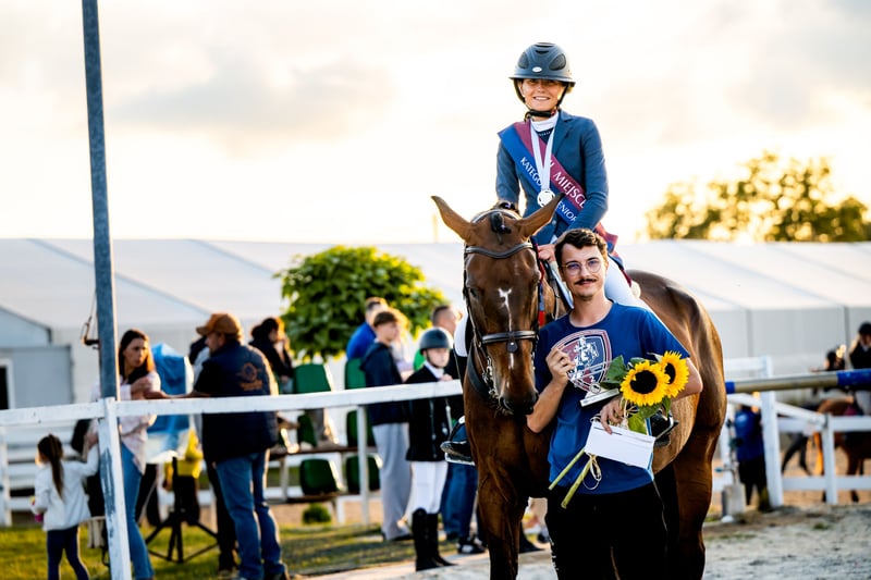 Idealny profesor do nauki i wygrywania Nie boi się żadnych kolorów, podmurówek basenów, murów itp. Zawsze po drugiej stronie. Wprowadził zawodniczkę w konkursy od 115 do 140 Kuty na przód, codziennie chodzi na karuzelę i spędza cały dzień na pastwisku sam lub z jednym koniem